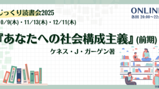 参加するじっくり読書会(第13, 14期)〈受付終了〉 第13, 14期テーマ本『あなたへの社会構成主義』ケネス・J・ガーゲン著, 東村知子訳(2004), ナカニシヤ出版.1冊の本を深く、じっくり読む「じっくり読書会」。第13期のテーマは社会構成主義、読む本は『あなたへの社会構成主義』です。 ... 2025.09.24 2026.02.25参加する