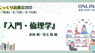 参加するじっくり読書会(第12期)〈受付終了〉 第12期テーマ本『入門・倫理学』赤林朗・児玉聡(2018), 勁草書房.1冊の本を深く、じっくり読む時間を通じて、自分なりの人間観・組織観・社会観(ファシリテーション観)を養う「じっくり読書会」。第12期のテーマは倫理学です。 本書の... 2025.06.01 2026.02.25参加する